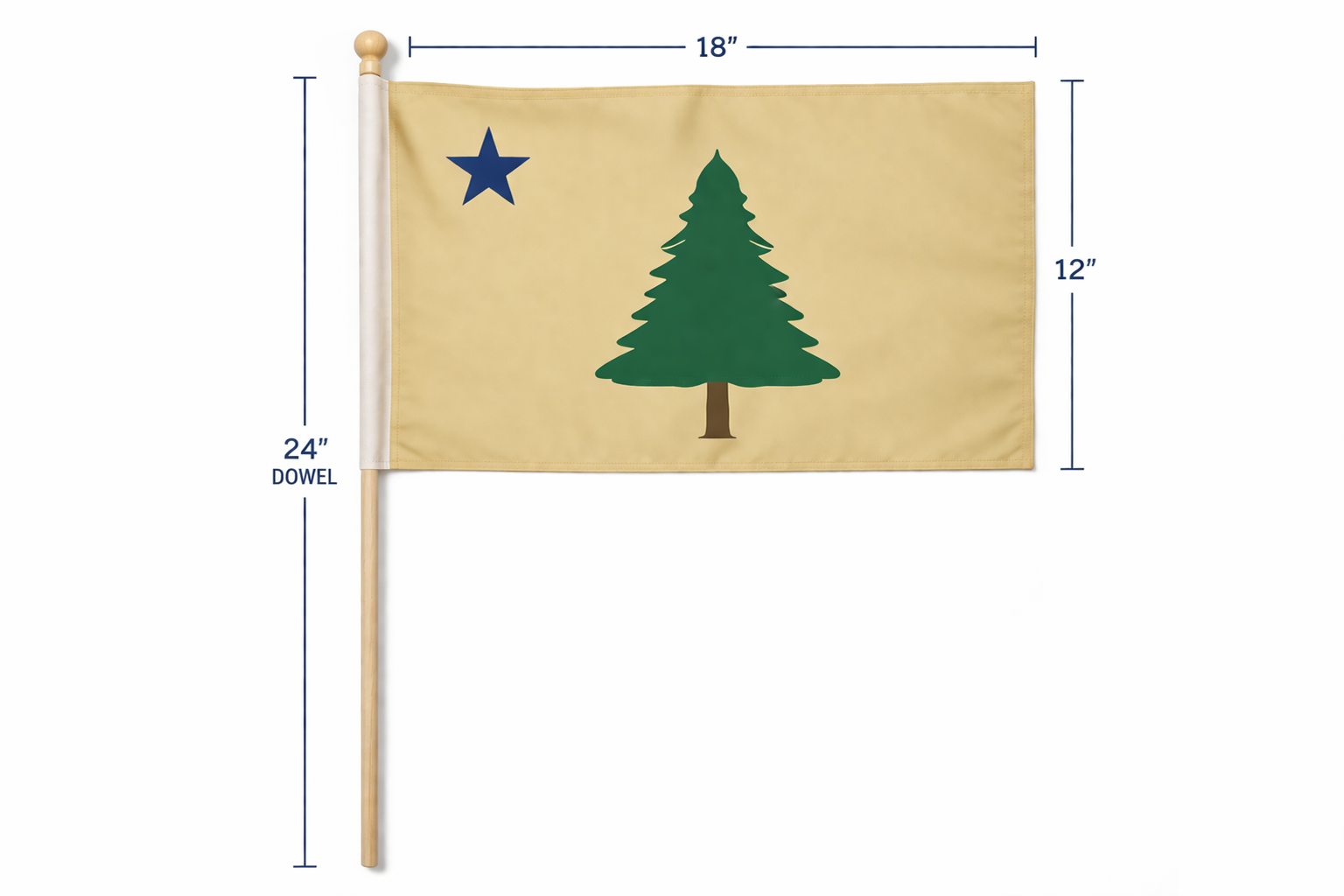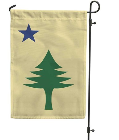 The Official Maine State Flag in a Stick-Mounted Nylon 12" x 18" with 24" Stick.
