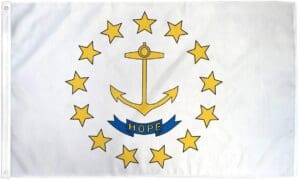 The present flag of the state of Rhode Island was formally adopted in 1897. As early as the 1640s, the anchor and “hope” were found on the Rhode Island Seal, and the seal’s words and emblems were likely inspired by the biblical phrase “hope we have as an anchor of the soul,” found in Hebrews, Verse 6:18-19.[1] Rhode Island’s earliest colonists were fleeing persecution in Massachusetts due to their religious beliefs.